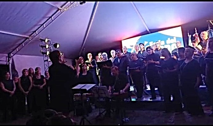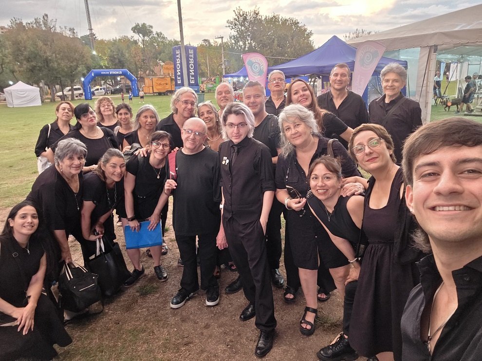 Tras los discursos de bienvenida a los asistentes de la Feria del Libro de La Granja por parte de Pittaro y de Brandán, y cuando el reloj marcaba las 20, la agrupación coral subió al escenario montado sobre la carpa principal del predio e interpretó seis canciones.