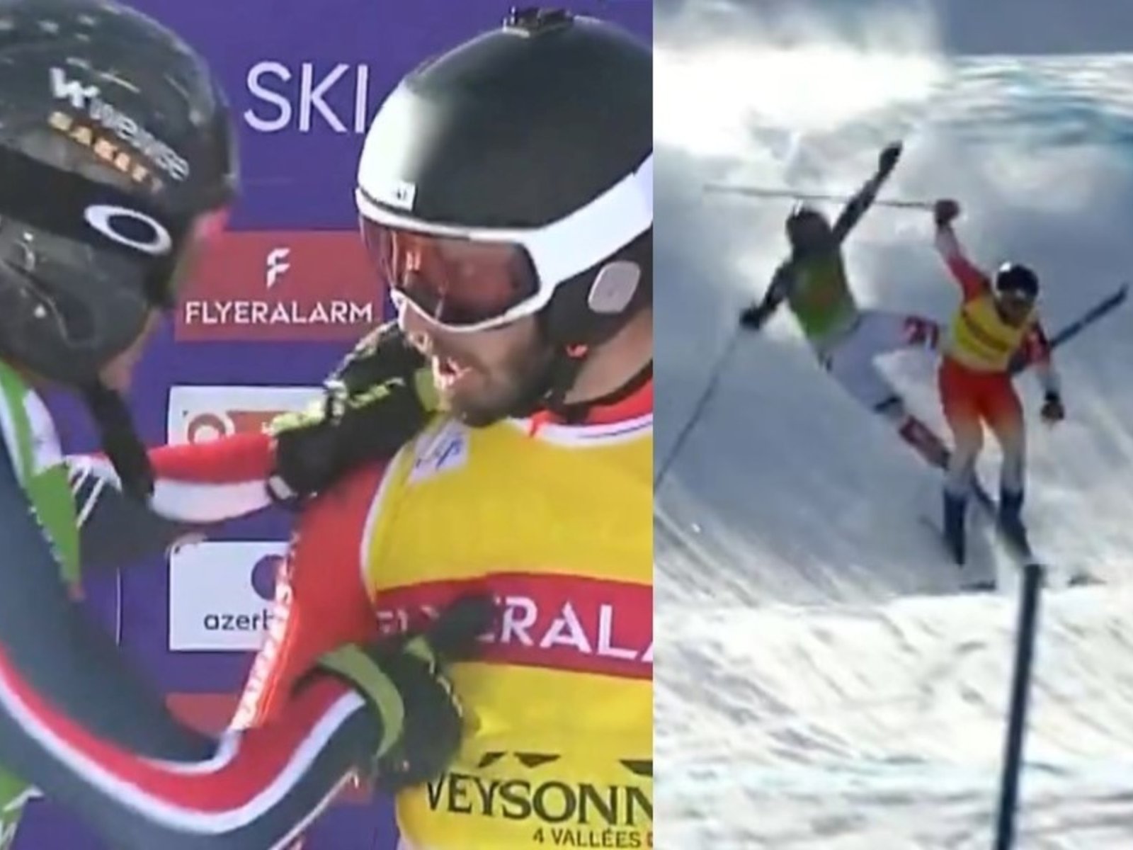 La grosse colère de Youri Duplessis-Kergomard 🇫🇷 envers Gil Martin 🇨🇭 qu’il juge responsable de sa chute à l’issue des quarts de finale à Veysonnaz #ChaletClub pic.twitter.com/OvHayjdOfc