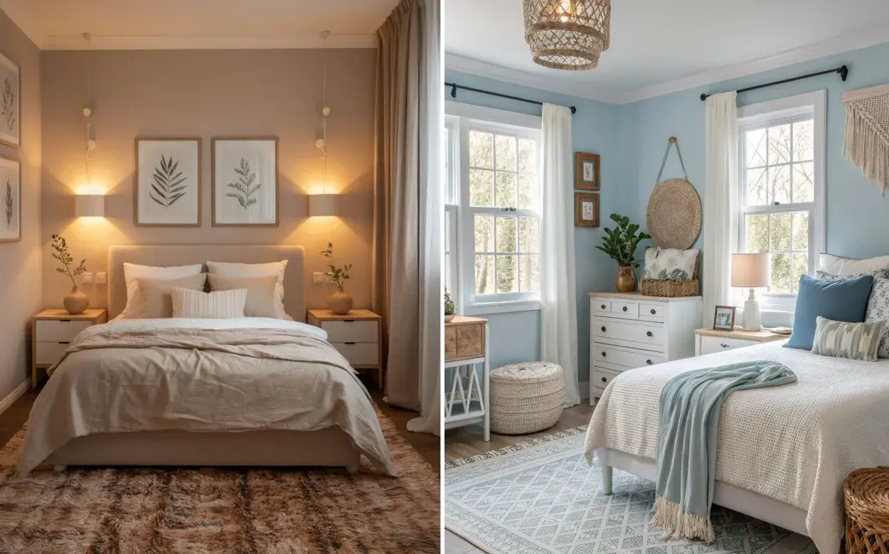 La ropa de cama es mucho más que un detalle estético: elegir fibras naturales como algodón, lino o bambú favorece la transpiración y regula la temperatura corporal. Un colchón y almohadas adecuados, seleccionados según la postura predominante al dormir, son esenciales para evitar dolores y mejorar la calidad del descanso. Las texturas también cuentan: mantas suaves y alfombras mullidas aportan confort sensorial y hacen que el dormitorio se sienta acogedor.
