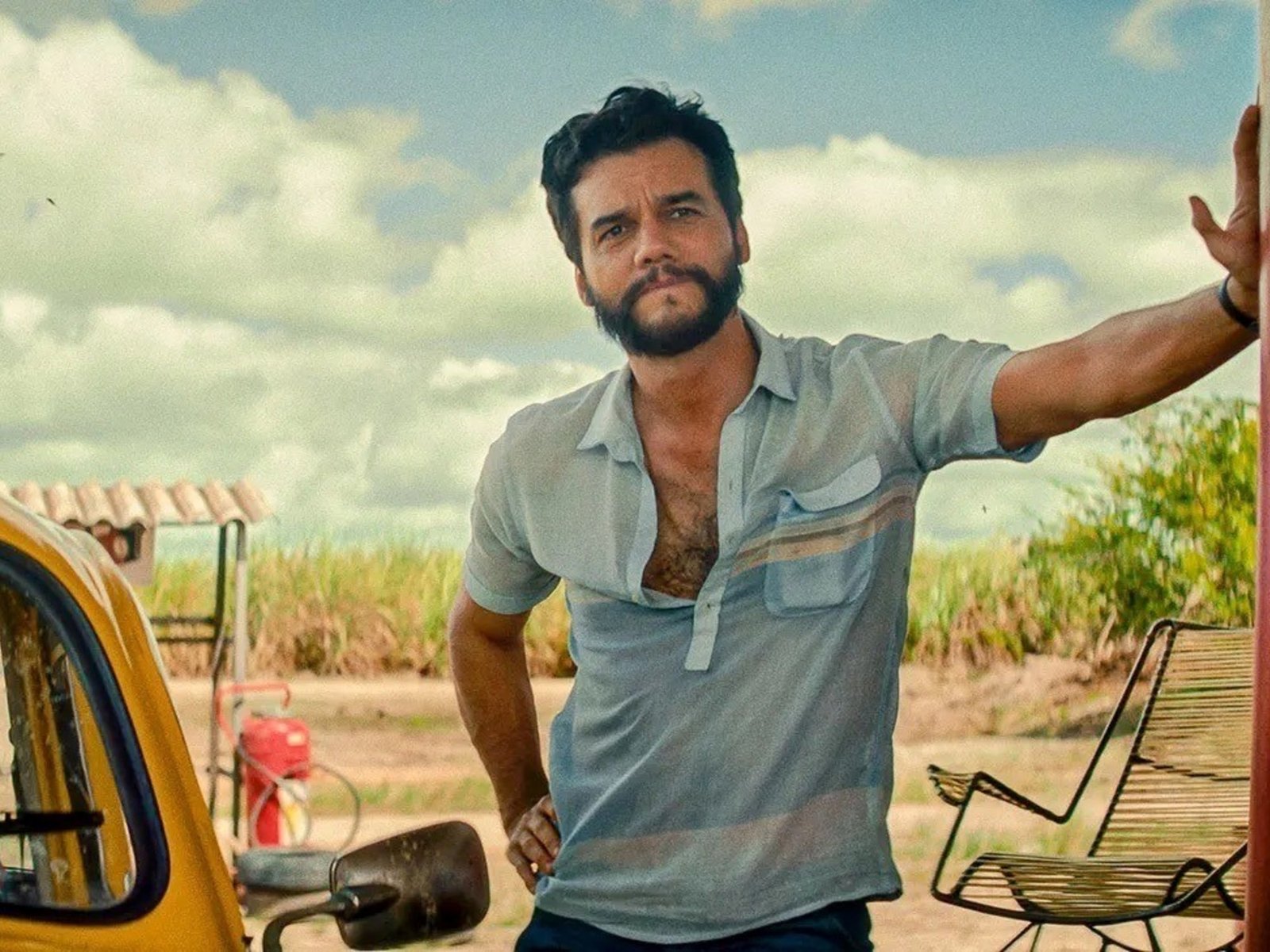 El clima de violencia y corrupción se respira y se siente apenas empieza la proyección. Marcelo (Moura, el actor de la serie Narcos y Tropa de élite) llega con su Volkswagen, un “escarabajo” amarillo -guiño a El resplandor, de Kubrick, como habrá tantos homenajes de Kleber, que antes fue crítico de cine- a una estación de servicio perdida en una ruta. Allí, a pocos metros, yace un cadáver tapado con diarios. Cuando llega un patrullero, los policías están más interesados en sacarle una coima a Marcelo que investigar qué hace ese cuerpo allí, al rayo del sol y husmeado por perros de la calle, en pleno carnaval de 1977.