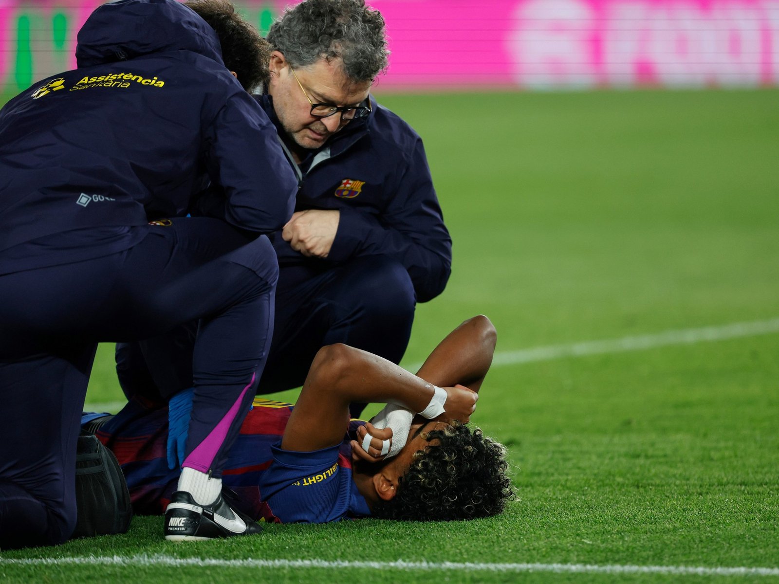 El delantero blaugrana de 18 años pidió el reemplazo a los 40 minutos del primer tiempo. Tras ejecutar con éxito, Yamal ni siquiera celebró el gol y se fue al suelo. Pareció agarrarse la parte posterior de la pierna izquierda.
